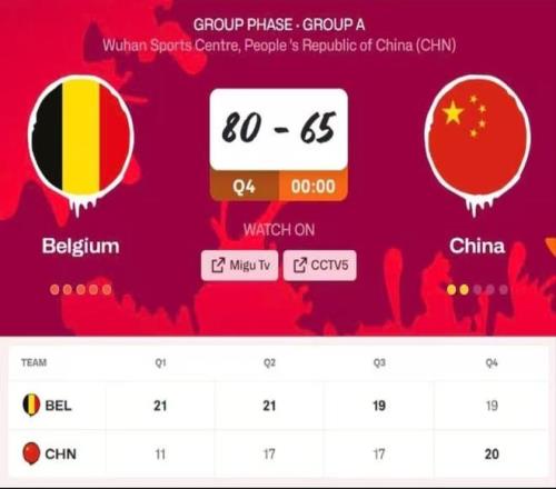 武汉世界杯资格赛上,中国女篮65:80不敌比利时队。