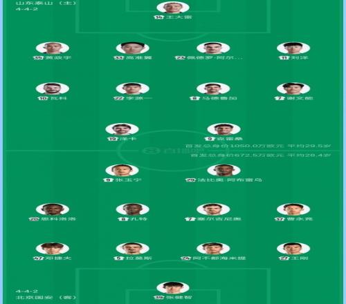 3月14日下午,山东泰山将在中超第二轮比赛中迎来与北京国安的对决,目前双方的首发阵容已经公布,在第一轮联赛眉骨受伤缝针的高准翼火线复出,韩鹏用上一轮的原班人马对阵北京国安。