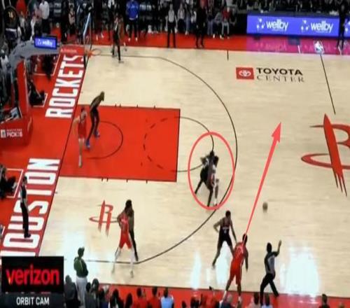 杜兰特第一时间没接到球,边线球发给小贾之后,杜兰特才接到球,没有给鹈鹕上来包夹的机会,杜兰特接球转身,两次运球来到罚球线位置,无视赫伯特-琼斯的防守干拔跳投,准绝杀命中,火箭反超。