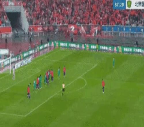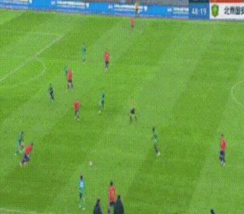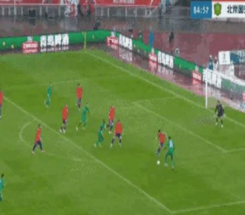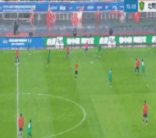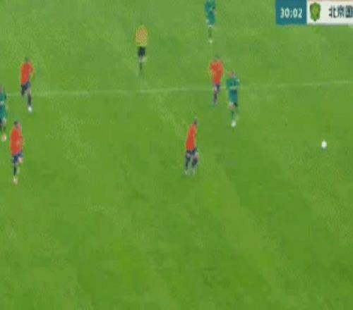 比赛打到第30分钟,国安的快速反击也起效了:张玉宁中路打门踢偏。