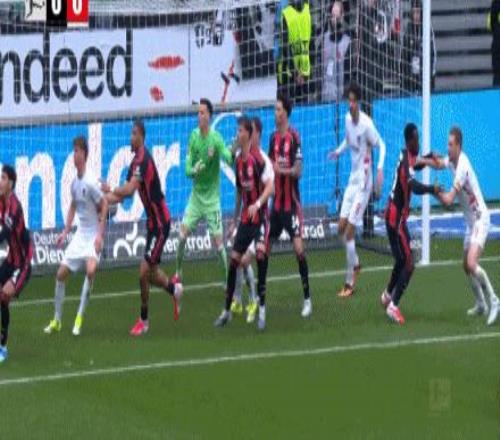 第15分钟,法兰克福左侧角球,拉马伊单拳将球击出