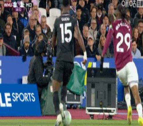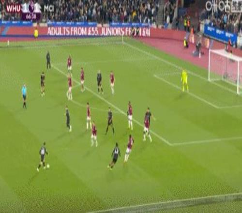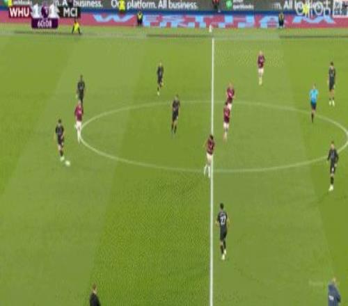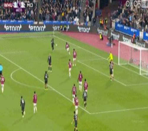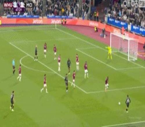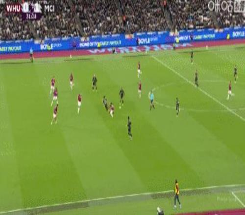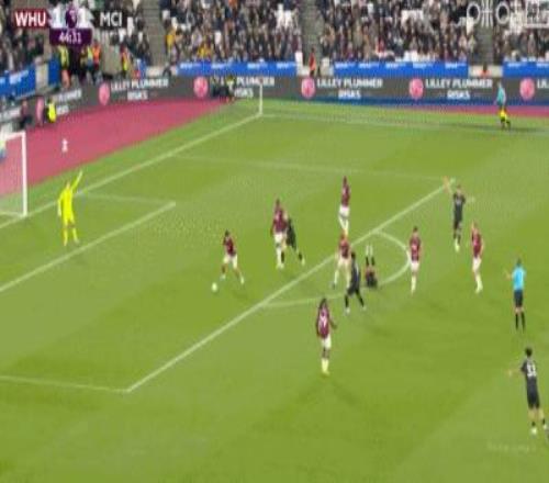第31分钟,B席禁区左路吊射破门,曼城1-0西汉姆联
