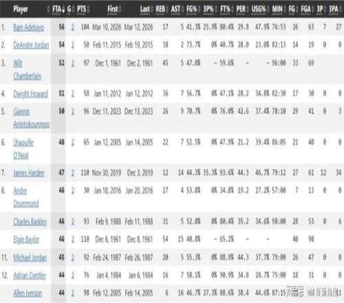 其中有两项纪录跟罚球那是“纠缠不清”。其一呢,阿德巴约两场比赛加起来,罚球次数高达56次,直接把小乔丹从“罚球纪录宝座”上给拽了下来,自己美滋滋地坐了上去,成了NBA历史新晋“罚球王”。其二更猛,两场比赛靠罚球就拿了45分,把哈登都给比下去了,这罚球得分能力,简直比印钞机还猛!