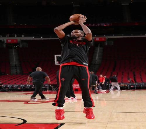 杜兰特和詹姆斯都选择了大红色战靴,而漆面皮材质的KD 19,和此前几代确实有很大区别。
