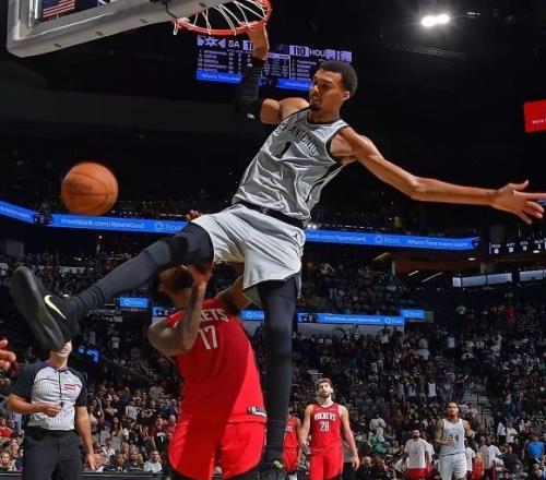 通过数据我们也发现这一点,比如最近几场比赛文班亚马每场比赛都有多个盖帽入账,目前连续两场有4个盖帽,在击败76人的比赛中,他送出六记盖帽,一个人就改变对手进攻方式。