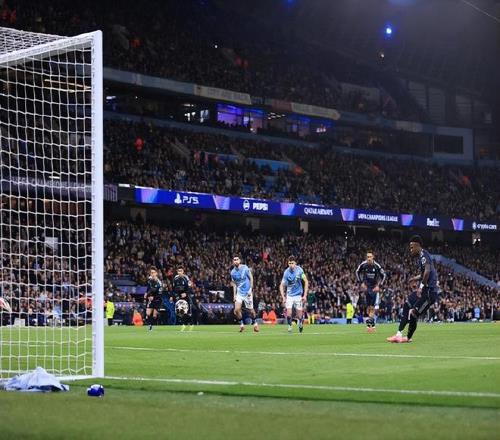 第68分钟,姆巴佩伤愈复出替补出场换下了迪亚斯;第73分钟,谢尔基弧顶处前沿也来了一脚远射,皮球是滑门而过;第77分钟,谢尔基禁区前沿挑传,努里门前高高跃起头槌破门,但还是处在明显越位位置进球无效。第81分钟,卡马文加往前传递,维尼修斯单刀推射被多纳鲁马挡出,巴尔韦德连补2脚入网,同样是因为越位无效。第93分钟,楚阿梅尼右侧传中,维尼修斯抢点垫射上演梅开二度的同时彻底终结比赛悬念;最终皇马2:1双杀曼城,两回合总比分5:1淘汰曼城拿到欧冠8强席位。