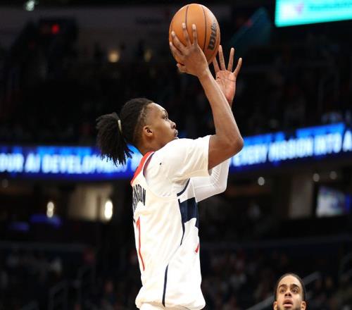 看他的进攻,那叫一个丝滑,三分球抬手就有,突破也干脆利落,得分的同时还不忘给队友喂饼,妥妥的奇才未来核心模样,说他是本场奇才唯一的排面,一点都不夸张。