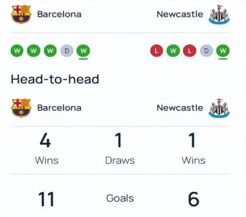 巴塞罗那 vs 纽卡斯尔(首回合1-1)