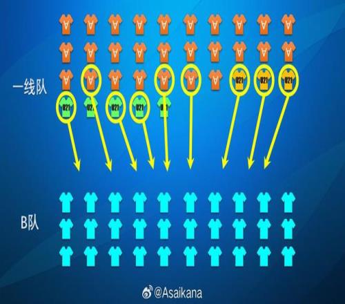二者虽有交集,但并无强制绑定关系。B名单中的球员不一定进入B队,A名单中的U21球员同样可以进入B队。