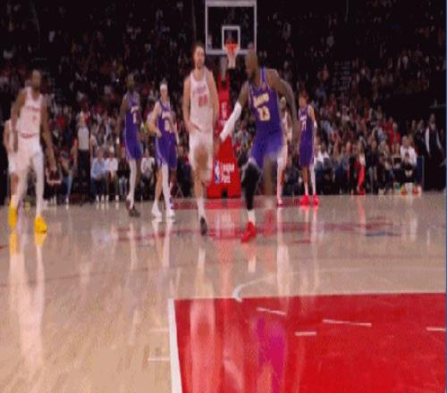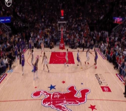 还有这样一马当先跑赢全场的超远滑翔战斧暴扣,直接打停火箭