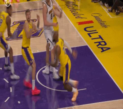 湖人还是得靠41岁的老詹,詹姆斯为里夫斯挡拆后顺下,空接暴扣2+1追平比分