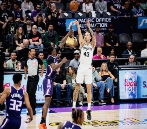比赛伊始,马刺队便反客为主,展现出了强烈的求胜欲望和极佳的竞技状态。首节比赛,马刺队的进攻如水银泻地般流畅,外线手感滚烫,内线冲击力十足,单节狂轰39分,而防守端则成功限制住了国王队的发挥,仅让对手得到22分。首节结束,马刺队便建立了17分的巨大领先优势,为整场比赛定下了基调。进入第二节,马刺队的攻势丝毫未减,继续扩大战果。球队在攻防两端的执行力堪称完美,再次打出39-25的单节比分。半场战罢,马刺队已经握有31分的领先优势,比赛胜负的悬念在半场结束时便已基本失去。