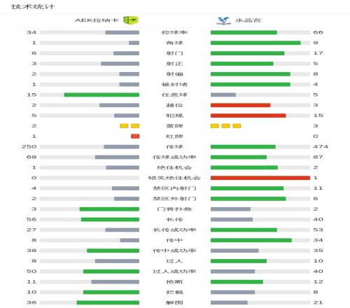 北京时间3月20日欧洲协会联赛 1/8决赛次回合,AEK拉纳卡对阵水晶宫。AEK拉纳卡萨沃里特破门。水晶宫伊斯梅拉-萨尔破门。最终比分AEK拉纳卡 1-1 水晶宫。两回合总比分AEK拉纳卡1-1水晶宫。
