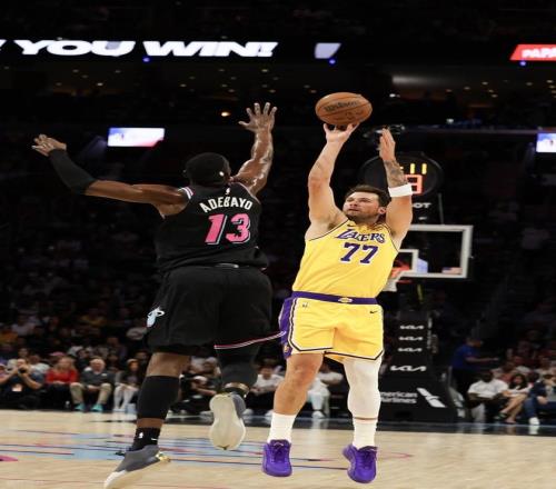 易边再战,东契奇开局就连续命中3分,带队逆转了1分!斯玛特3分也进,阿德巴约3分回应一个,东契奇、詹姆斯联手拿4分,湖人领先3分!阿德巴约罚球二中一后,热火进攻断电,里夫斯命中3分,艾顿内线吃饼,斯玛特造拉松3分犯规三罚全中,东契奇又造鲍威尔3分犯规三罚全中,湖人一波流建立13分领先。鲍威尔欧洲步上篮止血,老詹助攻海斯空接吃饼,希罗3分命中,东契奇抛投打进,韦尔上篮打进,东契奇3分潇洒命中,亚库乔尼斯空切进去上篮两分,韦尔补篮打进,三节打完,湖人97-88领先热火。