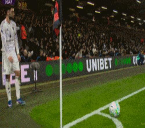 第59分钟,库尼亚禁区内被阿莱士-希门尼斯拉倒,裁判判罚点球。B费主罚打进,曼联1-0领先。最近4轮比赛,B费贡献了2球4助,独造6球。