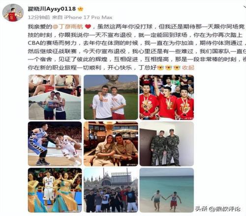 北京男篮球员翟晓川发文评论说道:我亲爱的丁彦雨航 ❤️,虽然这两年你没打球,但我还是期待那一天跟你同场竞技的时刻,你跟我说你一天不宣布退役,就一定能回到球场,你在为你再次踏上CBA的赛场而努力,去年你在体测的时候,我一直在为你加油,期待你体测通过,然后继续征战联赛,今天你宣布退役,我心里还是有一些难过,我们国家队一直住一个宿舍,见证了彼此的辉煌,互相促进,互相提高,那是一段非常棒的时刻,祝你在新的职业旅程一切顺利,开心快乐,丁总好。
