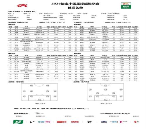 北京时间3月21日15:30,中超第3轮,京沪德比展开较量,北京国安主场对阵上海申花。赛前首发公布。