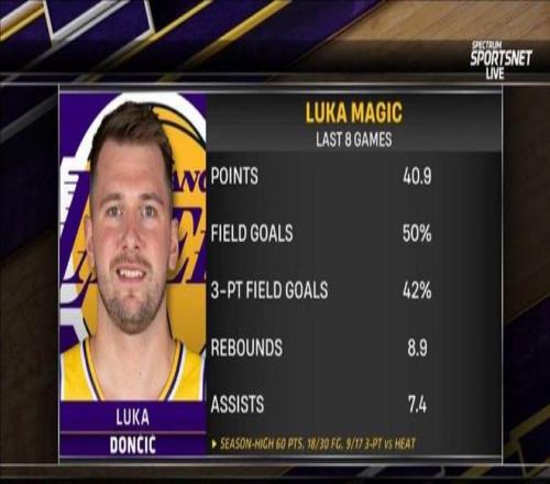 这8场比赛,东契奇全部出战,最低出手次数是24次,最低得分是31分,毫无疑问已经是湖人的绝对核心,这期间他场均能够拿下40.9分8.9篮板7.4助攻,再次证明只要让东契奇当核心,他是可以率队赢球的。
