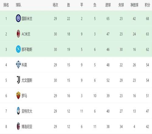 截至目前,在意甲积分榜上,由于尤文主场丢分,他们在多赛1场的情况下,没能反超科莫,只能屈居第五。由于科莫本轮将在主场迎战比萨,双方实力差距明显,科莫很可能战胜对手,并甩开尤文。此外罗马如果能够在主场击败莱切,他们的积分将追平尤文。本赛季,意甲争四格外激烈,尤文如果再丢三落四,随时可能无缘下赛季欧冠。