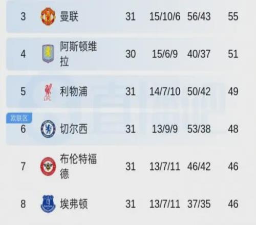 四、争四格局突变:三强集体刹车,曼联坐收渔利?