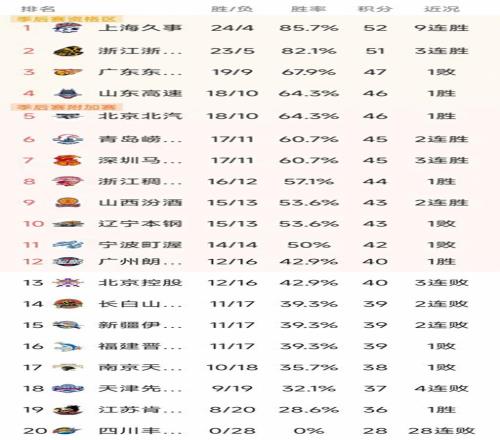 CBA最新积分榜