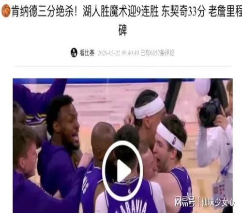 三分出手,球在空中旋了两圈,唰,空心入网。105比104。肯纳德全场才拿了13分,可这最后一颗三分值一整场。詹姆斯冲过去一把箍住他,湖人替补席全炸了。雷迪克赛后透露,最后这个回合就是专门给肯纳德画的战术,魔术恰恰漏掉了他们最不该漏的那个人。