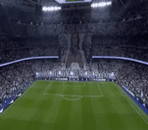 比赛开始,伯纳乌的Tifo徐徐展开,非常壮观。