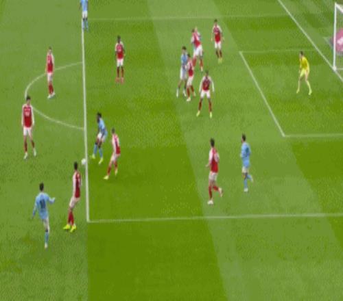 开场仅7分钟,萨卡右路突破横传,苏维门迪跟上直塞,哈弗茨单刀推射,被特拉福德神勇封堵,随后萨卡连着两脚补射,依然没能打穿曼城门将的十指关。