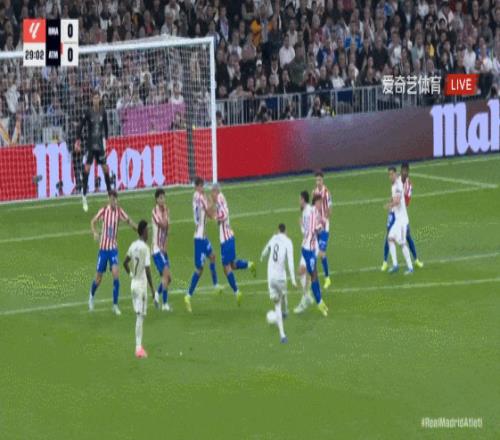 第31分钟,巴尔韦德插入禁区横传,皇马中路包抄慢了一些。