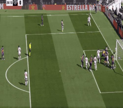 好在4分钟后,坎塞洛开出角球,阿劳霍高高跃起头槌破门,巴萨1-0打破僵局。
