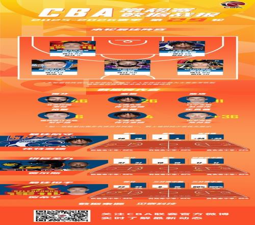 福建晋江文旅球员黎伊扬以单场6次抢断的数据领衔抢断榜;上海久事球员怀特塞德以单场4次封盖的数据领跑盖帽榜;山东高速篮球俱乐部球员陈林坚以+36的正负值领先。