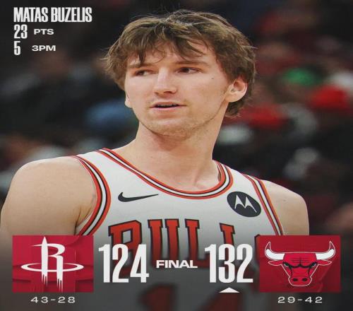 这是杜兰特生涯第74场40+,NBA现役第四多,前三名分别是:哈登107场、詹姆斯79场、库里75场。公牛这边7人得分上双:塞克斯顿25分4板3断、布泽利斯23分4板、吉迪15分7板13助2断。公牛全队三分38中19,命中率50%!