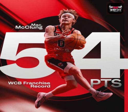 其中面对老鹰下属球队科利帕克天鹰队的比赛,麦克朗全场出战44分钟,投篮34中18,三分18中9,罚球5中5,拿下了54分7篮板10助攻。