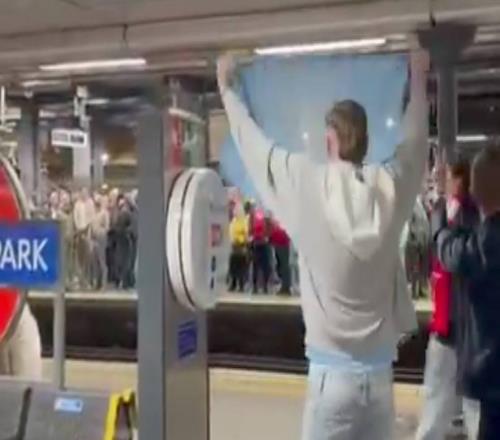 曼城球迷在地铁站对阿森纳球迷高唱:你们又是第二,哦嘞哦嘞