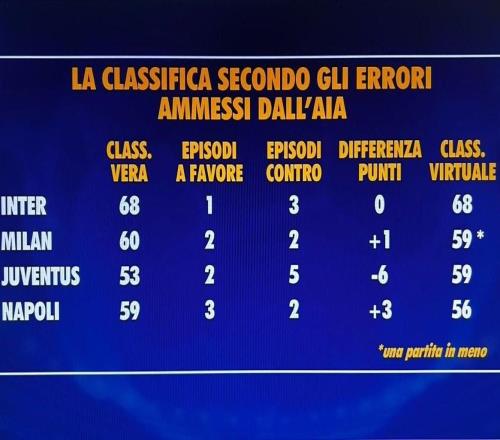 本赛季意甲误判影响:尤文5次遭遇误判少拿6分,国米积分不变