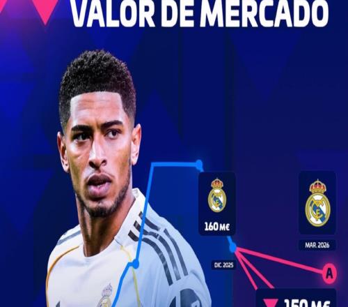 北京时间3月16日,德转对西甲球员的身价进行了更新,皇马中场贝林厄姆的身价从1.6亿欧元下降至1.4亿欧元。对此...