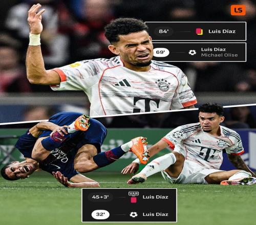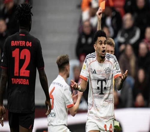德甲第26轮,拜仁慕尼黑客场1-1战平勒沃库森,路易斯-迪亚斯进球后染红,这是这位拜仁边锋本赛季第二次出现这种情...