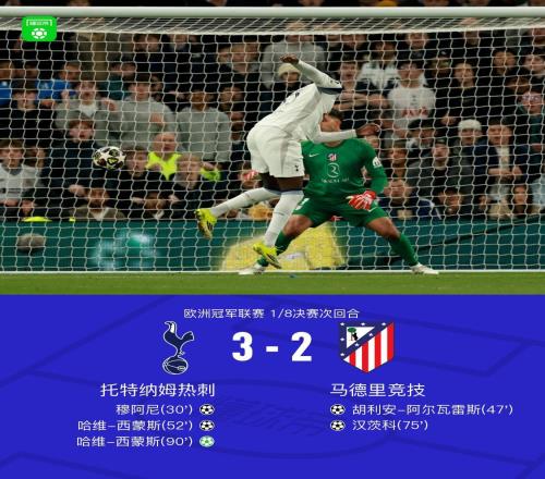 XbotGo丨马竞23热刺,总分75晋级,西蒙斯双响,小蜘蛛传射