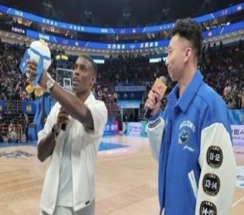 法比奥现身首钢男篮主场观赛,中场休息时带领观众为球队加油