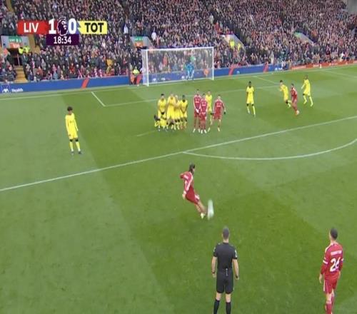 北京时间3月16日英格兰足球顶级联赛第30轮,利物浦主场对阵托特纳姆热刺。上半场,索博斯洛伊直接任意球破门,加...